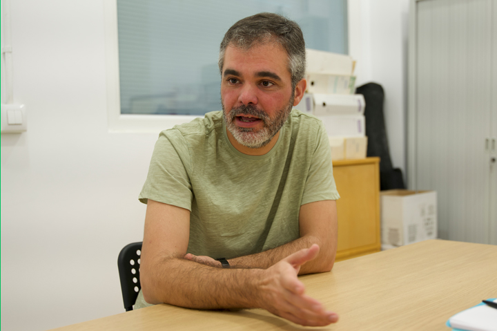 「COOP57アンダルシア」の技術委員会書記、ホセマヌエル・ベタンソス。自身が勤める協同組合のオフィス内にCOOP57アンダルシアも間借りしている。撮影:篠田有史