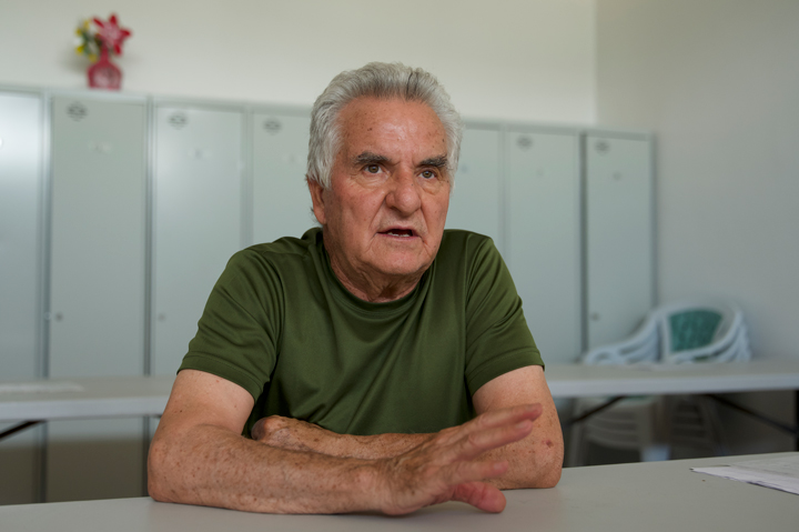 「COOP57アンダルシア」の融資を受けた「マリナレーダ農業協同組合」の理事長、フアン・プリエート(88)。「協同組合は、村人の暮らしの原動力。COOP57は、返済能力うんぬんよりも、そういう側面にこそ融資するところが、すばらしい」と話す。撮影:篠田有史