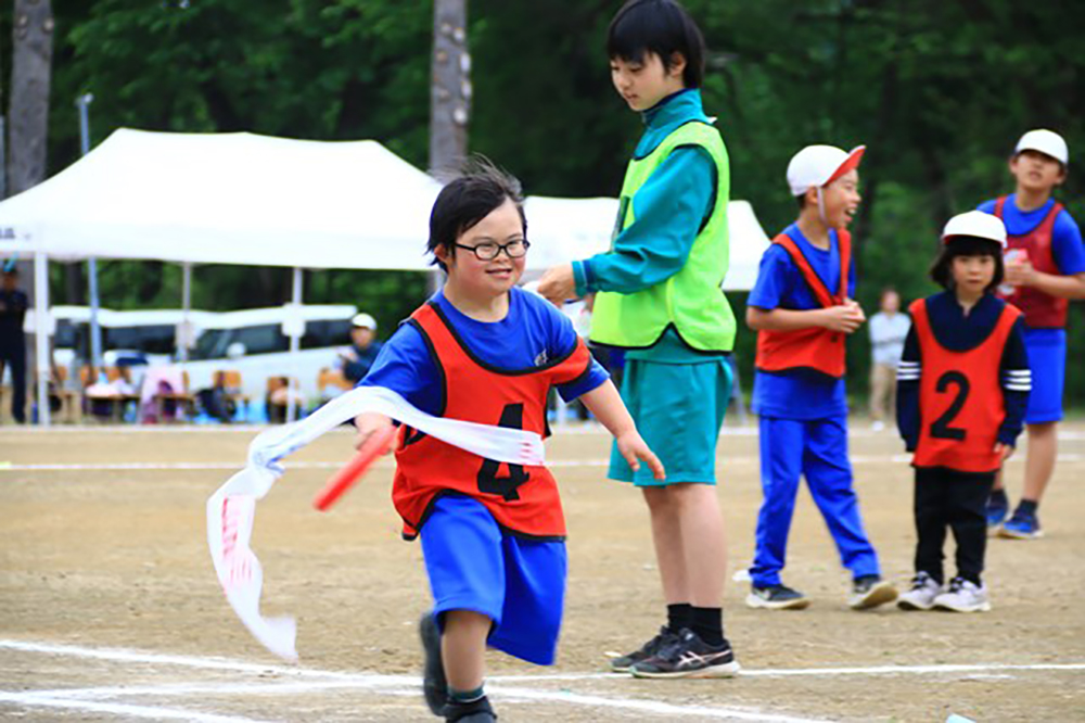 「立候補した中学生と小学生の実行委員会の子どもたちが、みんなで話し合って、スローガン、種目や内容などを全部、決めていきました。面白いですよ、まず、赤組も白組もない。赤と白で、対抗したくないって。徒競走もなし。全員リレーです。チームで何周走るか競うものですが、晴大くんだけはチームに入らないで、1人でバトンを持って2周走ったら完走ということにしたのです。晴大くん、みんなから大拍手をもらって2周走って、うれしそうでした。パン食い競争をやりたいって言うので、それもやりました。最後の締めは、地域の方や保護者と一緒に、伝統的な『からす踊り』を、みんなで輪になって踊って。先生たちは仕事がないから、テントの中で、子どもたちの様子を見て、なごやかに笑っているんですよ」