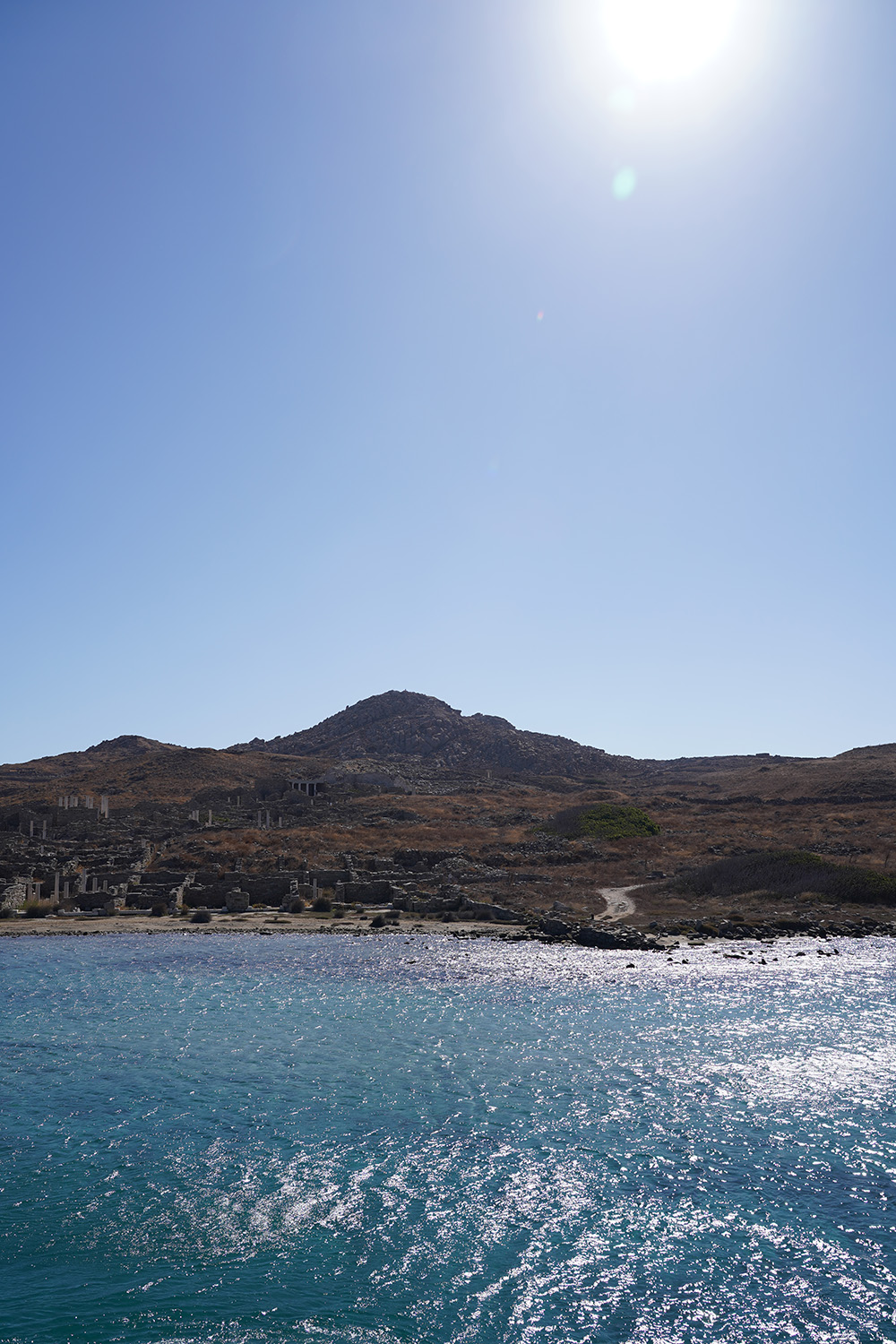 アポロンの島・デロス島。デロスとは、ギリシャ語で「明るい」あるいは「輝いた」という意味。訪れたのは9月半ばだったが、船で近づくとまさに日差しを浴びて輝いているようだった。