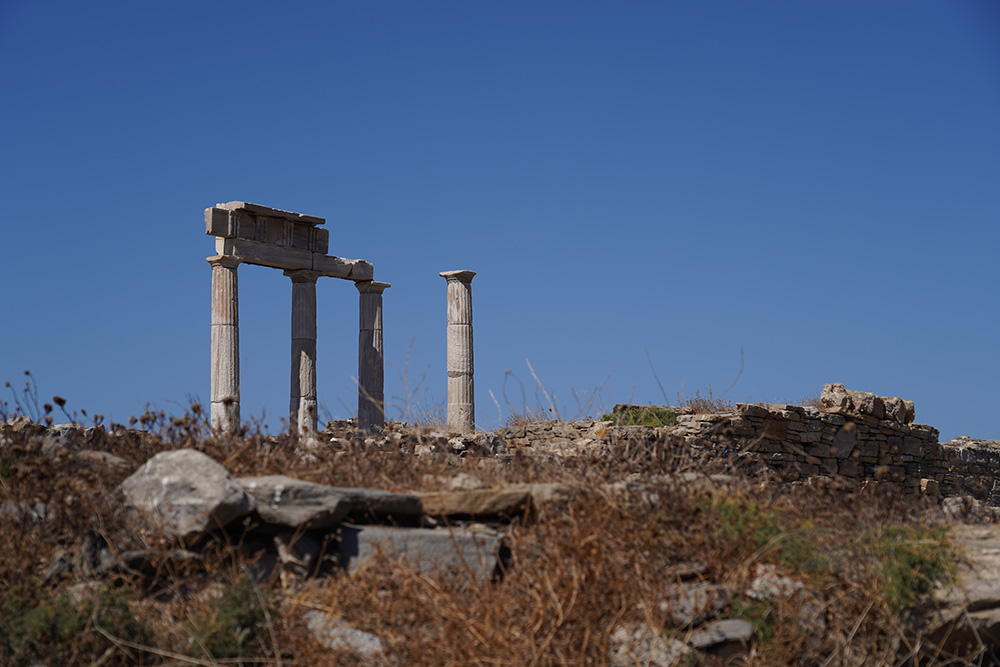 デロス島のアポロン神殿。現在は廃墟となっているが、かつての威容を想像させるような立派な柱がいまもそびえている。