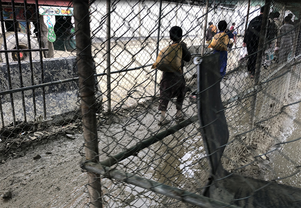 そんな私の脇を、6、7歳の少女が、体の半分ぐらいありそうな白い袋を担ぎ、重さに負けまいと懸命に体を前に倒して通路をどんどん先へ進んでいった。大丈夫か……。その子だけではなかった。汚れた服を着た子どもたちが、歪んだ鉄柵のすき間や、鉄の網の下に掘った穴を通って侵入し、袋に詰まった肉や粉をせっせと運ぶ。国境の管理者も見て見ぬふりだ。ときどき「早くいけ」と尻を蹴とばす。トルハム名物の小さな密輸者たち。わずかな日銭を稼ぐために運び屋をしなくては生きていけない子どもたちである。