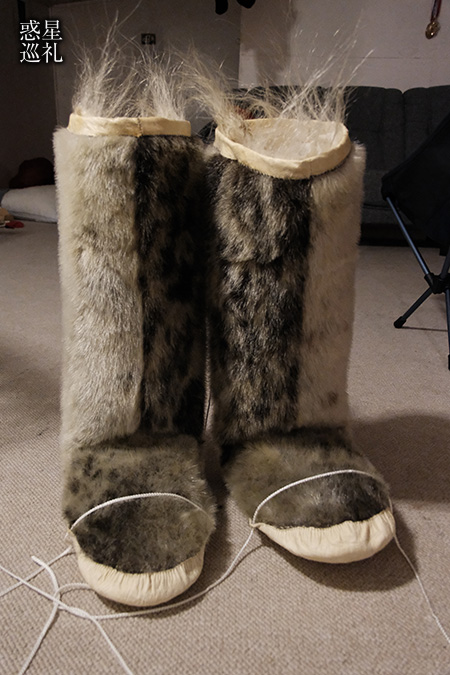 あらためて縫い方を教えてもらい、ふたたび丁寧に縫いはじめる。たわめ方が失敗すると左右のふくらみにズレが生じて縫い直しだ。犬橇をやらない日はそれこそ一日中縫いつづけるが、何度も何度もやりなおすので一日に20センチぐらいしか進まない。結局、完成までに2週間ほどかかったが、妥協せず作っただけに履き心地はかなり良く、納得の出来栄えとなった。